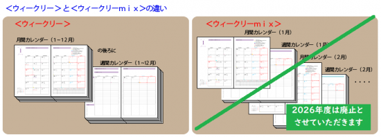 <週間カレンダー>左 と<メモページ>右 が見開きになったタイプです